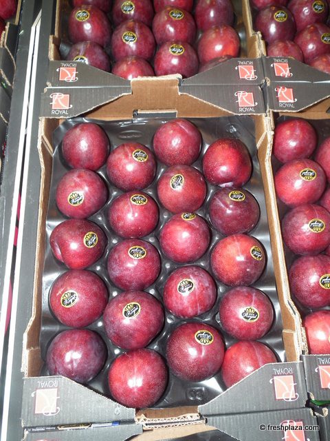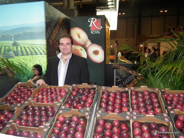 Federico Casado Reina, de ROYAL, mostrando su producto estrella: el Pluot, una dulce combinación entre ciruela y albaricoque.