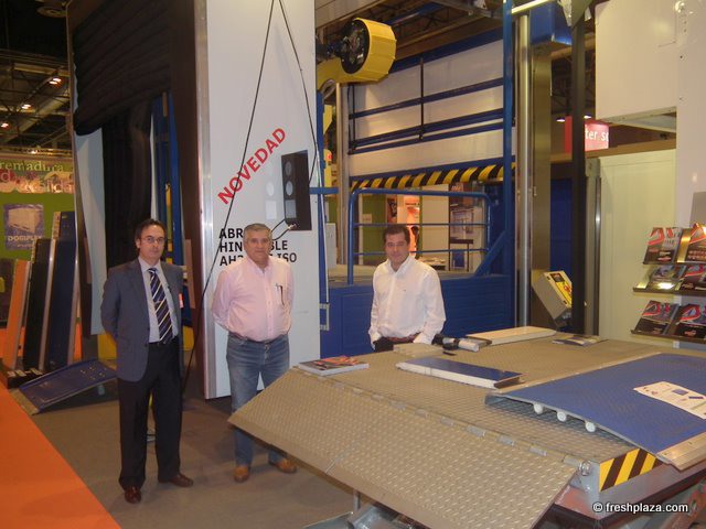 Ángel Mir Pons y su equipo comercial de ANGEL MIR, presentando la nueva maquinaria niveladora de carga.