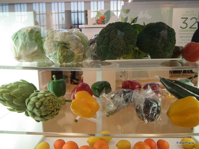 Verduras expuestas en el stand de Difrusa, empresa exportadora de Cartajena.