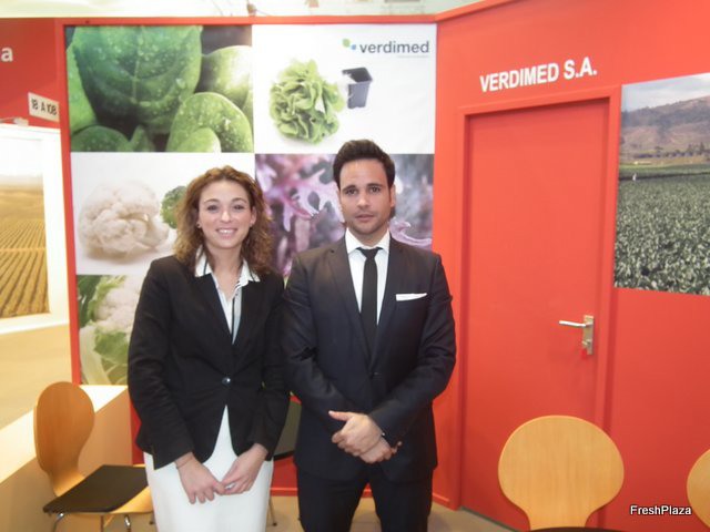 Carlos F. Gutiérrez y su compañera en su stand de Verdimed, principal empresa española productora y exportadora de espinacas.