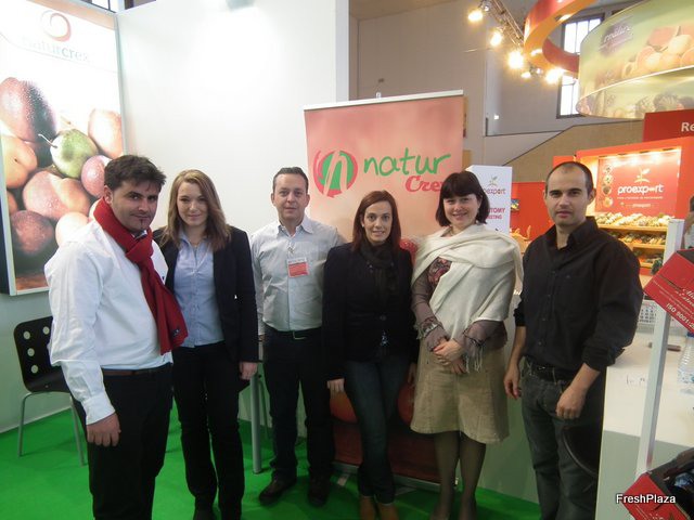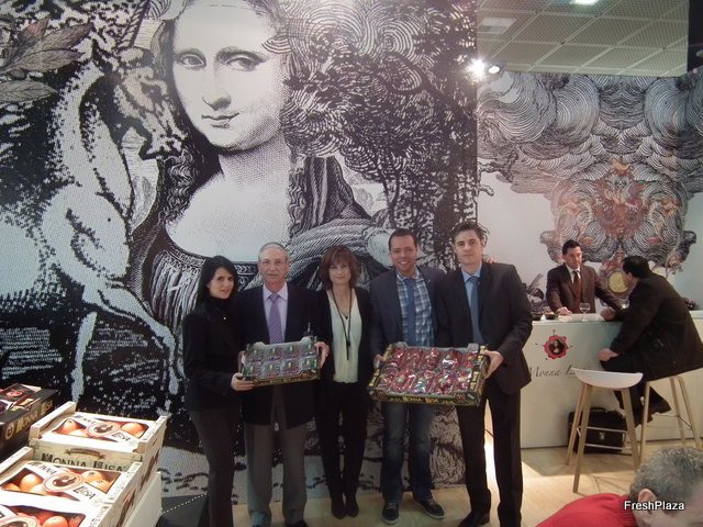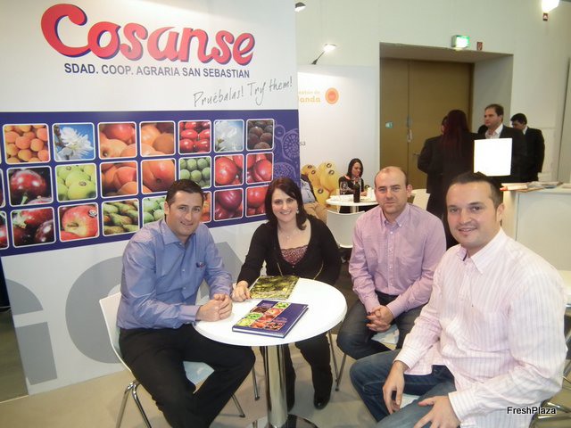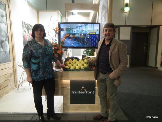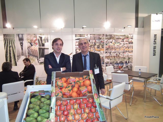 Directivos de Nufri, exponiendo un año más en Fruit Logítica sus manzanas y peras de Lleida.