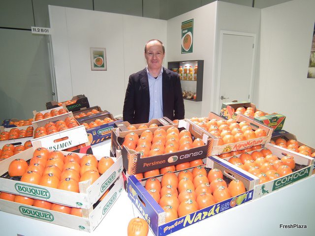 Rafael Perucho, director comercial del Consell Regulador Denominació d'Origen Protegit Kaki de la Ribera del Xúquer, promocionando los caquis valencianos. La campaña acaba de concluir y los resultados parecen mejorar año tras año.