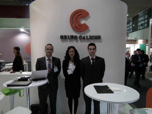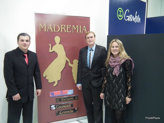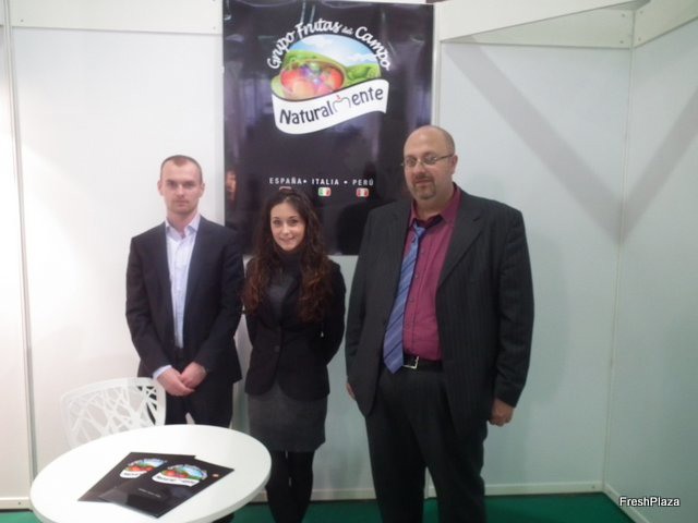 De izquierda a derecha: Yaroslav Sylka, comercial; Raquel Ezquerro, de contabilidad y Antonio Mazzullo, Director Comercial, en su stand de Grupo Frutas del Campo, que importa y exporta con su marca Naturalmente.