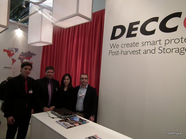 Equipo directivo internacional de DECCO en su stand, promocionando sus ceras de recubrimiento de frutas entre muchos otros productos.