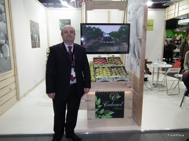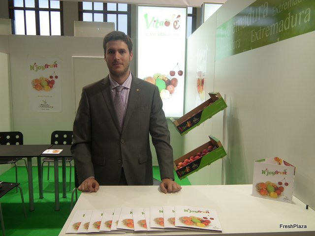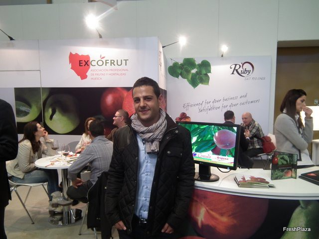 Francisco Javier Rubio, Director de Exportación de la empresa extremeña NJouyfrut, promocionando la fruta de hueso de la región.