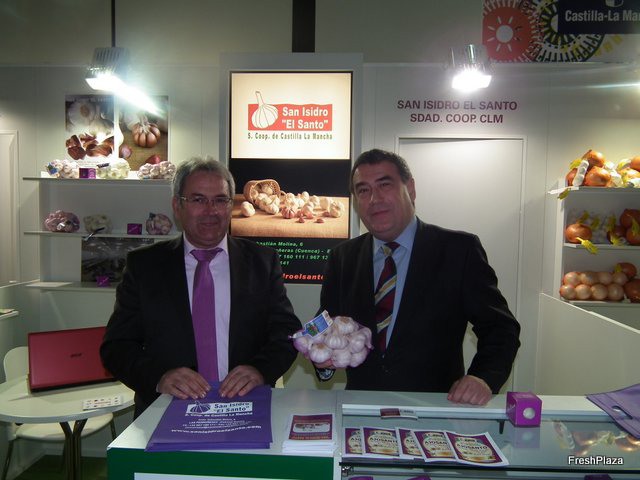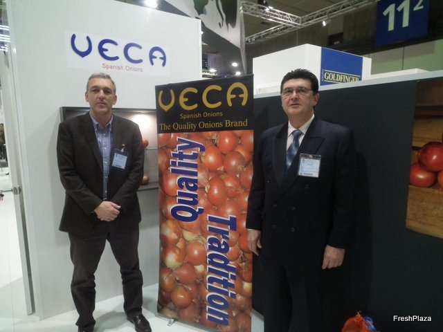 Arcadio Rovira (izquierda), productor asociado a Vecca y Eladio Barrachina, del departamento de ventas de Vecca, empresa valenciana productora y exportadores de cebolla de tres tipos. Este año buscarán la expansión a nuevos mercados.