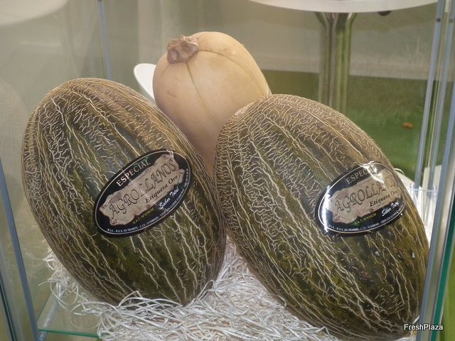 Melones Piel de Sapo y calabaza expuestos en el stand de Agrollanos.