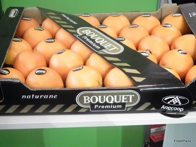 Naranjas de Bouquet marca Premium, expuestas en el stand de Anecoop.