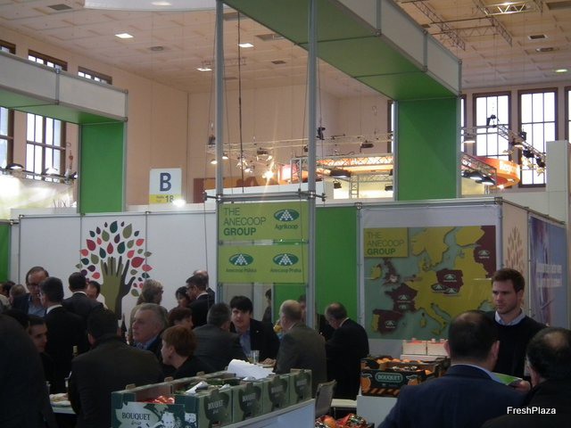 Gran stand de Anecoop en el pabellón 18, llevando a cabo la promoción de su marca Bouquet