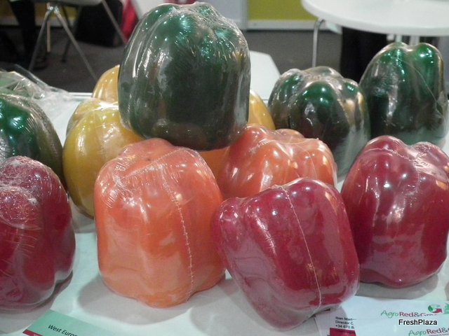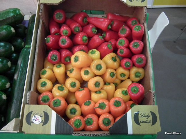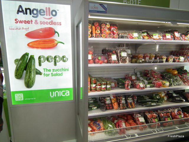 verduras murcianas expuestas en el stand de Unica Group, entre ellas la nueva variedad de pimiento sin semillas Agello.