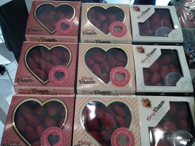 Plus Berries ha preparado una campaña especial para el día de los enamorados, con unas cajitas diseñadas para la ocasión con fresas en su interior, disponibles con crema de chocolate con leche y chocolate blanco.