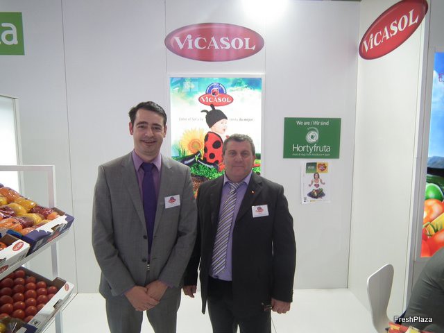 Stephane Van Marrewijk, Responsable del departamento Comercial de Vicasol, y Juan Antonio González, presidente de Vicasol, empresa almeriense que estuvo promocionando su campaña hortícola.
