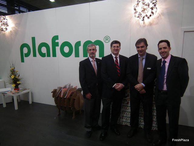 De izquierda a derecha: Natascia Spartani, Responsable de Calidad de Hispalco; José Beltrán, Gerente de Hispalco, Ana Beltrán, adjunta a Gerencia; Arjar van Hooff y Willem van Rooij, del Departamento Comercial de Hispalco, promocionando la recién empezada campaña de fresas.