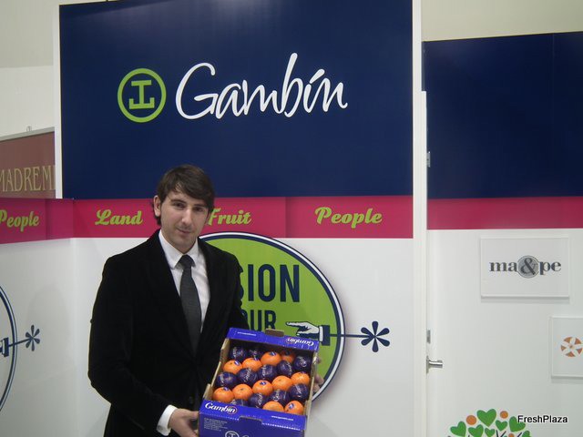 Carmelo Victoria Gambín, Gestor Comercial de Gambín, en promoción de sus cítricos valencianos.
