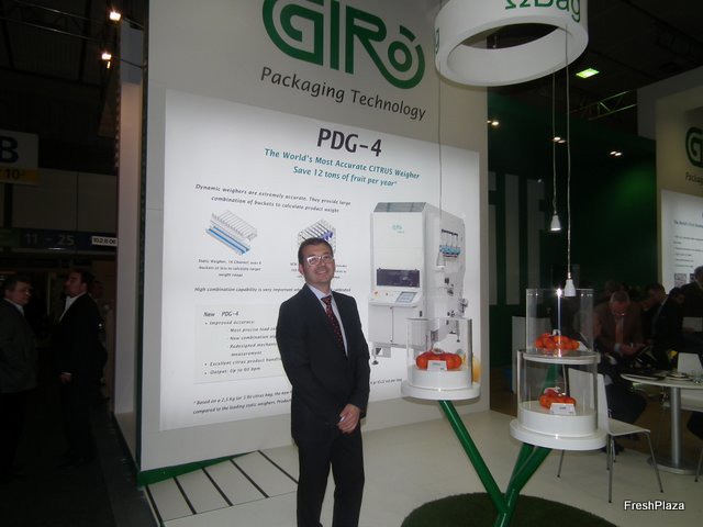 Salvador Solà, Director de Exportación y Negocios del Grupo Giró. En el fondo puede apreciarse la máquina de pesado y envasado PDG-4.