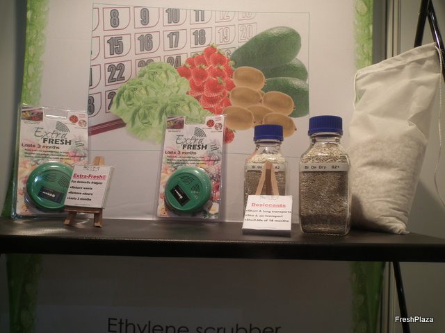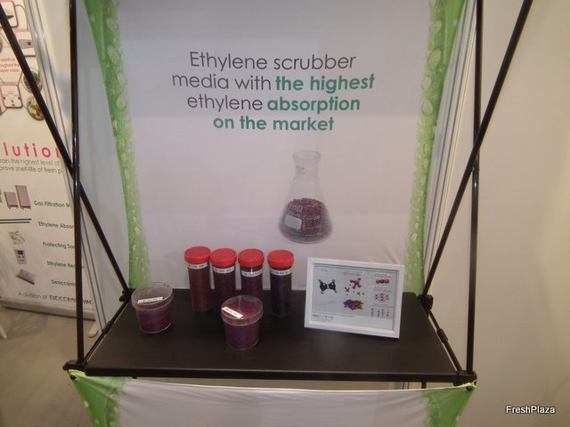 En el stand de Bioconservación se exponían distintos productos para la absorción del etileno como el que aparece en la imagen, en granulado.