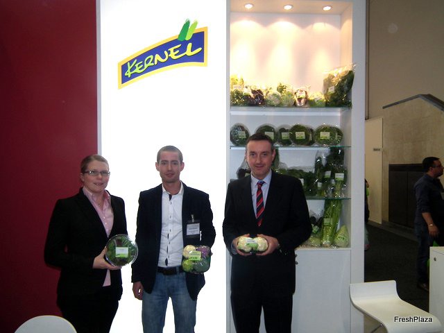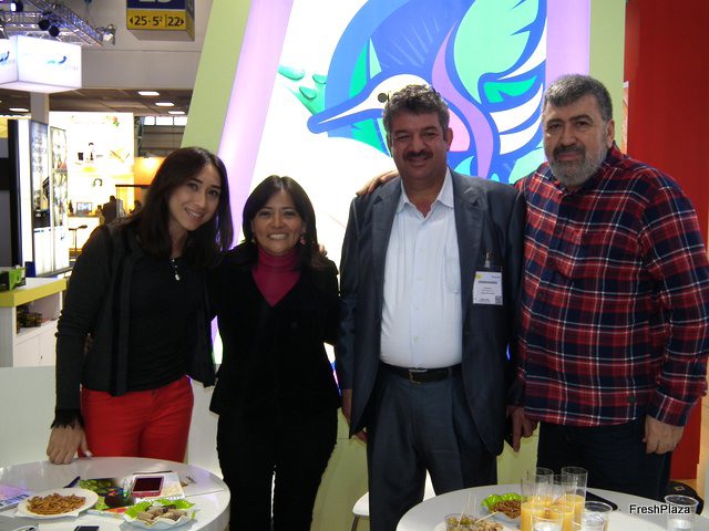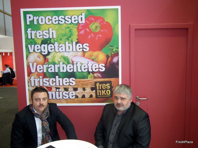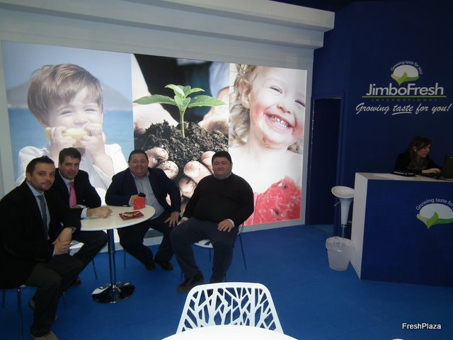 Responsables directivos en el stand de Freshko, empresa dedicada al procesamiento de frutas y verduras frescas.