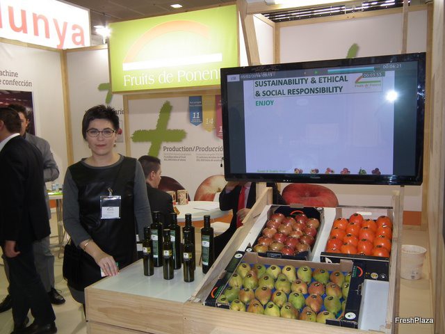 Núria Dolcet, del departamento comercial de Fruits de Ponent en el pabellón de Cataluña.
