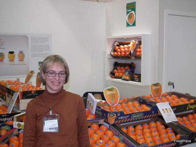 Stand del Consell Regulador de la Denominació d'Origen Kaki Ribera del Xúquer, promocionando el kaki de la variedad Rojo Brillante con marca Persimon.