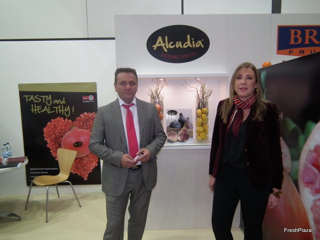Teresa Agulló y Francisco Tomás, de la empresa de Elche, Alcudia, especialistas en granada. Además también comercializan limón y brevas.