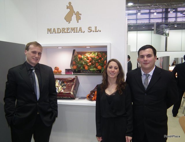 Stand de Madremia, S.L. con su equipo directivo promocionando los cítricos valencianos.