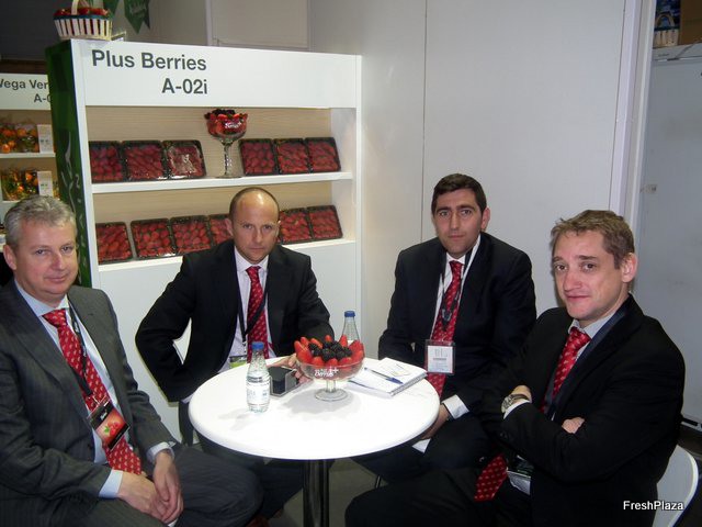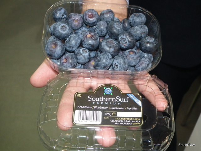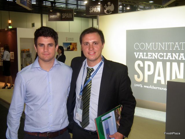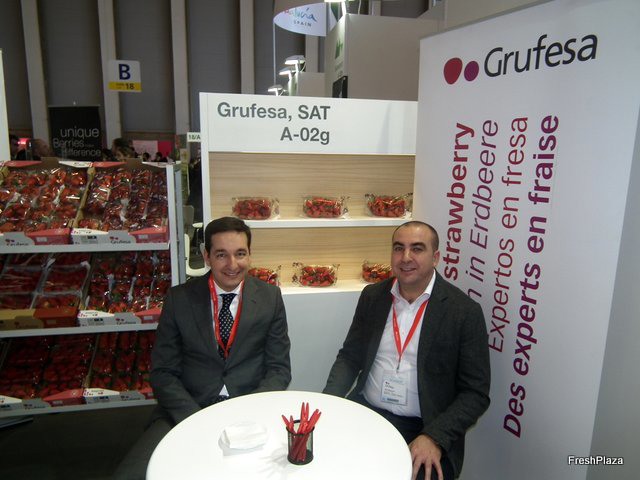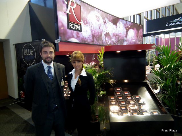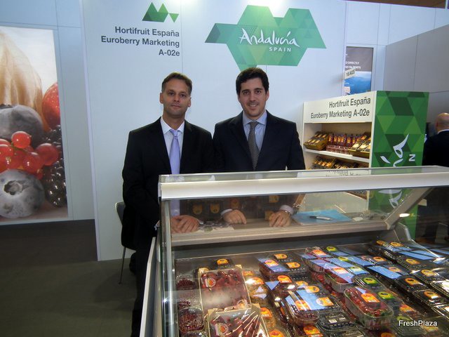 Thomas y Alberto Jiménez Capitán, en el stand de Euroberry Marketing y Hortifruit España, líderes europeos en producción y comercialización de berries, especializados en arándanos.