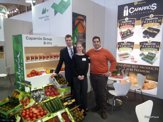 Stand de Proexport (La Asociación de Productores-Exportadores de Frutas y Hortalizas de la Región de Murcia) con su director general Fernando P. Gómez en el centro. La región de Murcia es la principal productora europea de brócoli, coliflor, lechuga y limón.