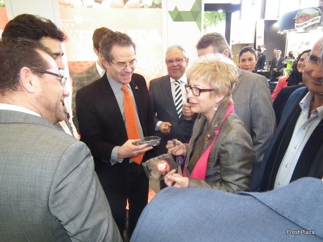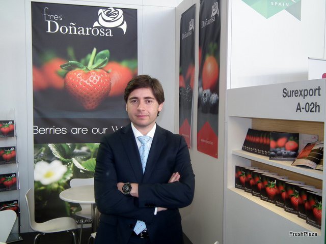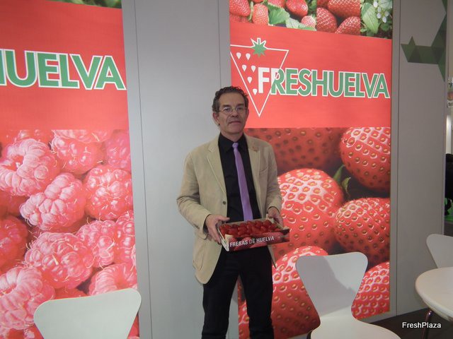 Rafael Domínguez, gerente de Freshuelva, promocionando un año más las fresas de Huelva en el Hall 18.