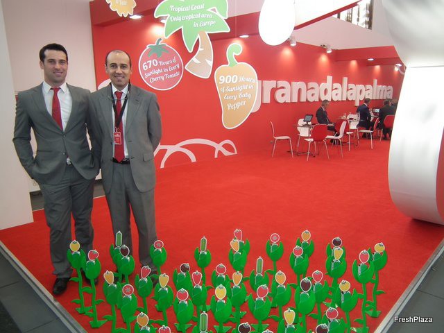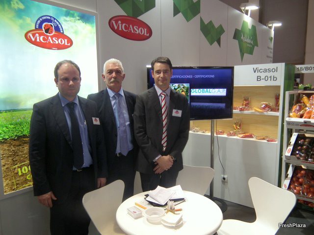 Responsables comerciales en su stand de Vicasol, empresa de Almería productora y comercializadora de frutas y hortalizas, especialista en tomate.