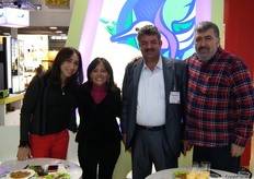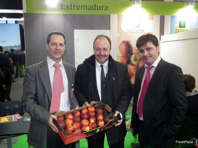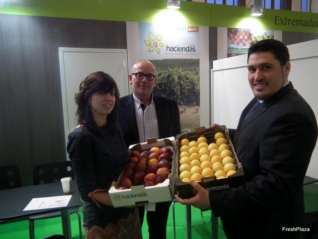 Equipo directivo y comercial de NaturCrex, especialistas en frutas de hueso y pepita, en el pabellón de Extremadura (España).