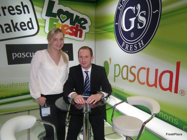 Adam Hill, de Pascual Marketing, con Dorota Szafalowicz en el stand de G's Fresh.