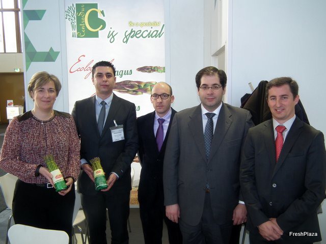 Stand de Centro Sur y Efa ECA en promoción de los espárragos de Granada. De izquierda a derecha: Mari Carmen Álvarez, subdirectora de Efa ECA:; Francisco Javier y Esteban Zamora, de Centro Sur; Antonio Zamora, presidente de Efa ECA y Gustavo Ródenas, director de Efa ECA.