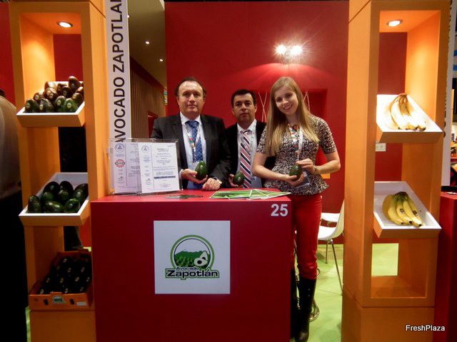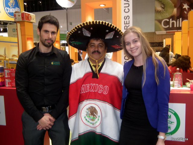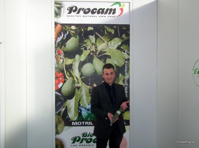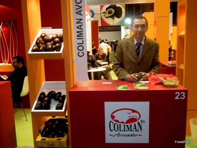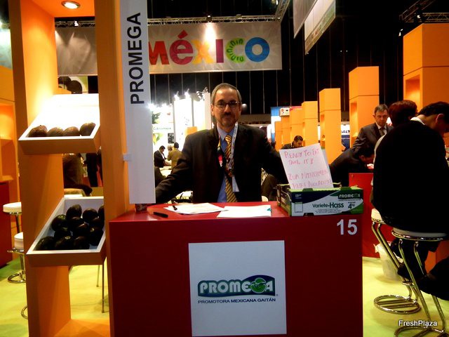 Ignacio Moreno Vizcaíno en su stand de COLIMAN ACOCATOS, en el pabellón de México, promocionando sus aguacates Hass.