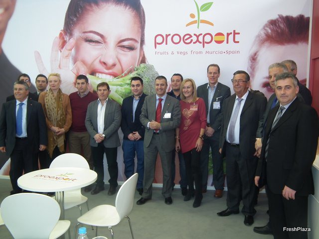 Stand de Proexport (La Asociación de Productores-Exportadores de Frutas y Hortalizas de la Región de Murcia) con su director general Fernando P. Gómez en el centro.	La región de Murcia es la principal productora europea de brócoli, coliflor, lechuga y limón.