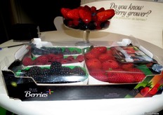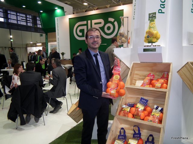 Juan José Valls en su stand de Surexport, promocionando la marca Doñarosa para berries de Huelva.