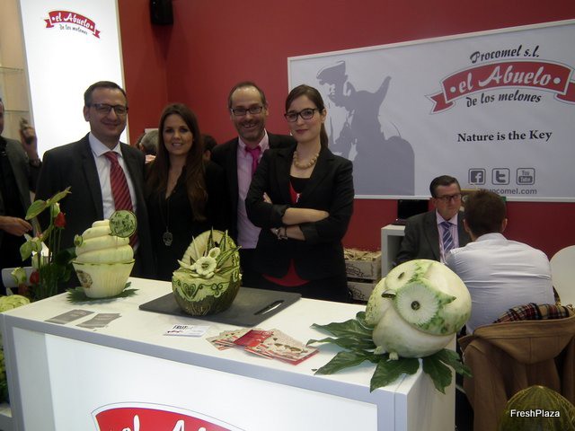 Raúl Sempere, Carmen Egea, José Luís Rodríguez y Virginia Parra en el stand de Procomel promocionando un año más, la marca El Abuelo de los Melones.