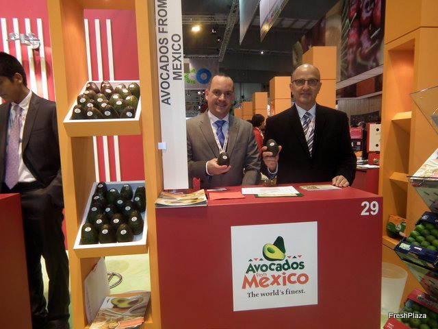 Eduardo Serena y Armando López en su stand de Avocados de México.
