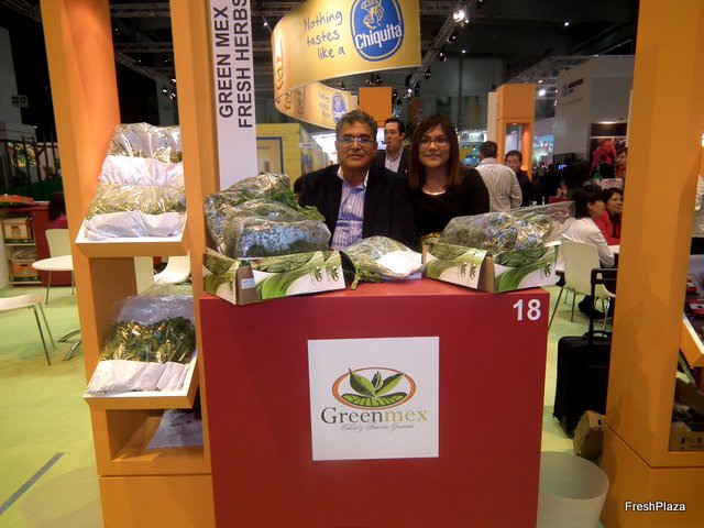 Joel Pitarch y Rebekka Boekhout de FreshPlaza, en el pabellón de México