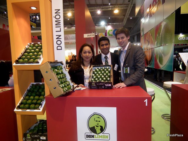 Sahira Hernández, Mauro García y Schneider Martín en el stand de Don Limón, promocionando los limones mexicanos.