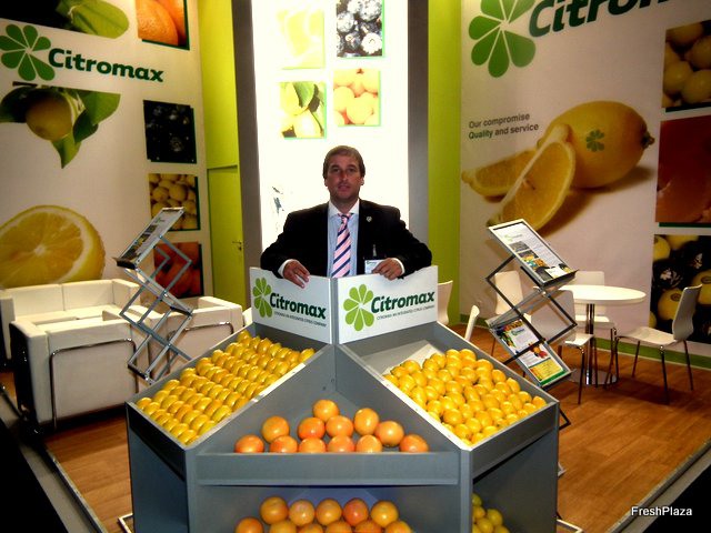 Bernabé Padilla en su stand de Citromax, en el pabellón de Argentina.