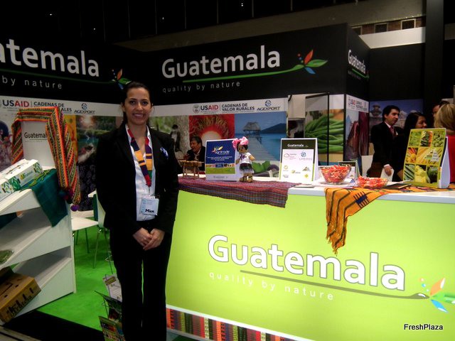 Nancy Ruiz, en el stand de Guatemala, promoviendo el secctor agrícola guatemalteco.