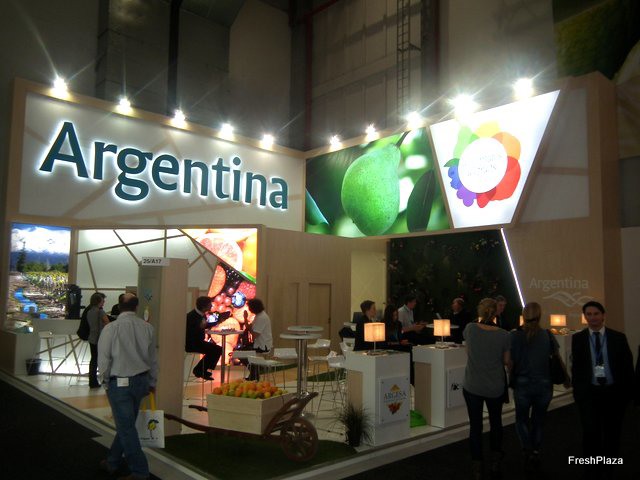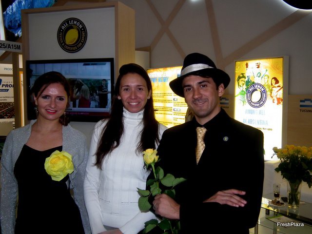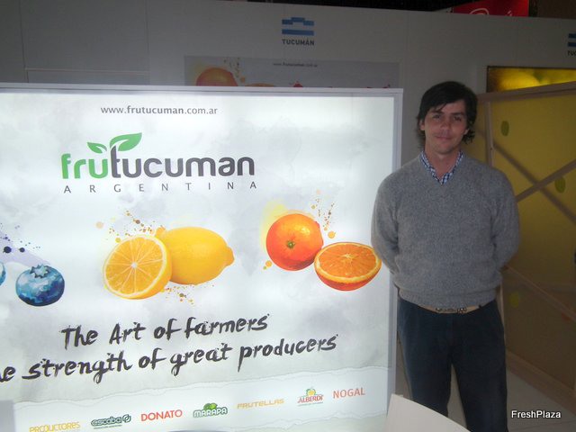 Stand de Frutcumán en el pabellón de Argentina. La empreesa de Tucumán produce y comercializa cítricos y arándanos.