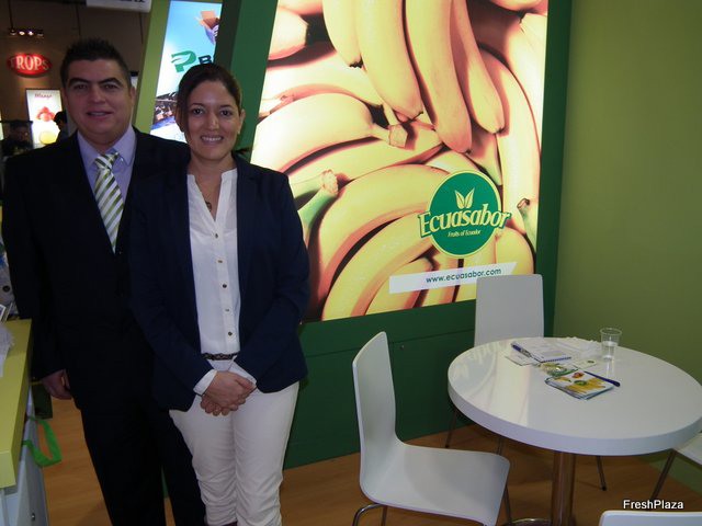 Responsables comerciales en el stand de Ecuasabor, promocionando las bananas de Ecuador.