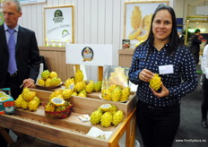 Adriana Medina, de TropiFoods, presente en el pabellón de Costa Rica.