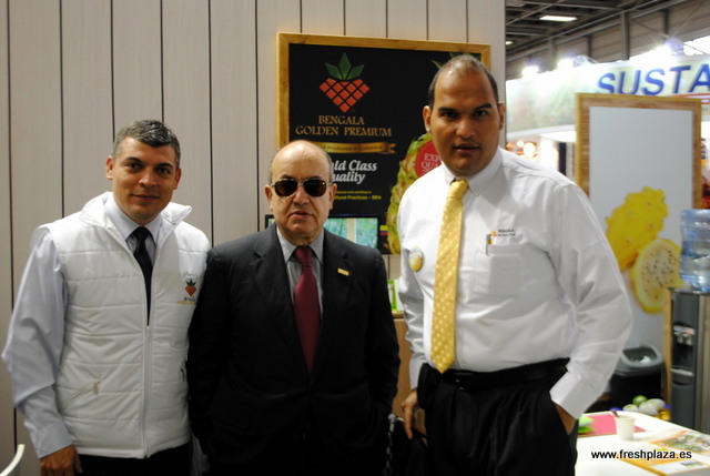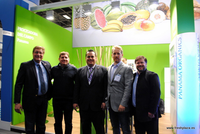 Guido Spadafora (embasador de Panamá en Alemanía), Gino Spadafora (Tropical Queen pineapples), Eduardo Palacios (Director nacional de promoción de exportaciones) y otra vez Panamá Organics.