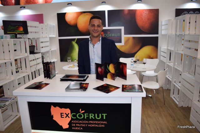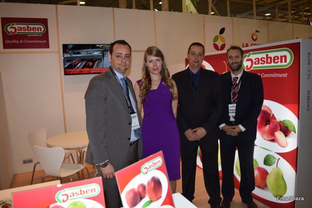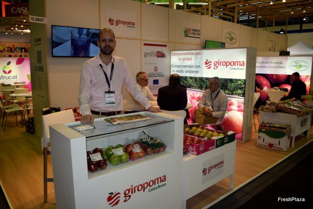 Stand de la empresa catalana Dasben, en promoción de su producción de fruta de hueso y pepita.