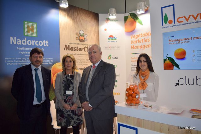Stand del Club de Variedades Vegetales Protegidas, apostando fuertemente por la variedad de clementina tardía NADORCOTT. En octubre tendrá lugar el primer año comercial de la nueva variedad de Naranja Navel M7.