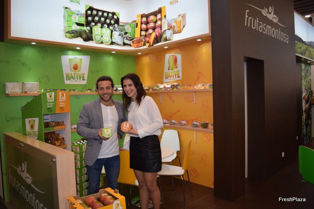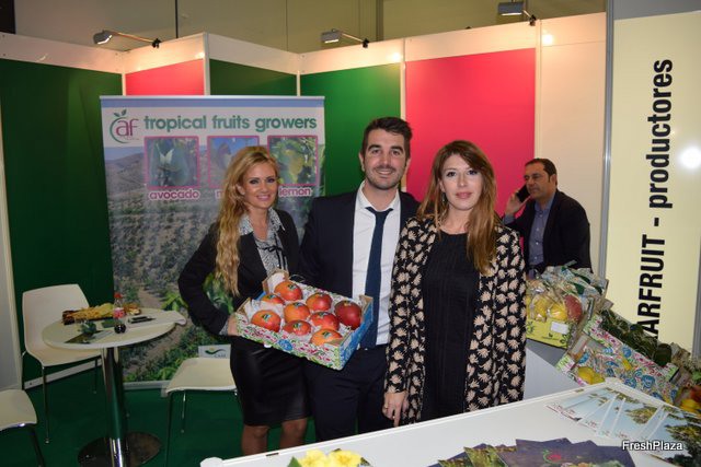 Stand de Axarfruit, con su gerente Álvaro Martínez y Melisa Frenchelli. Esta jóven empresa de Málaga se especializa en frutas tropicales.