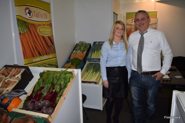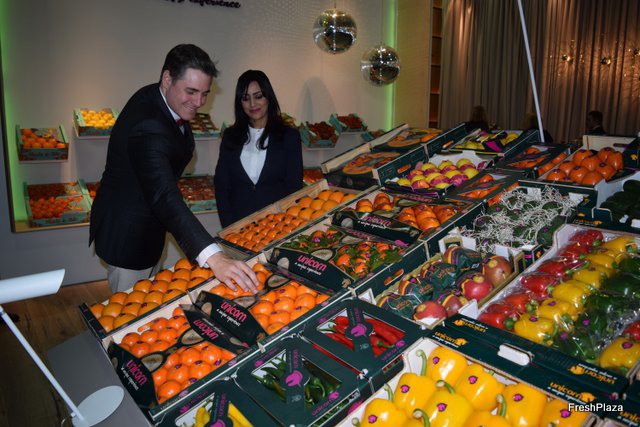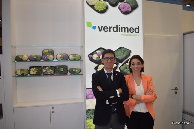 Sebastián Aguilar y Lucía Bello, en el stand de la empresa murciana Verdimed, en promoción de las mini coliflores y mini brócoli en distintas variedades.