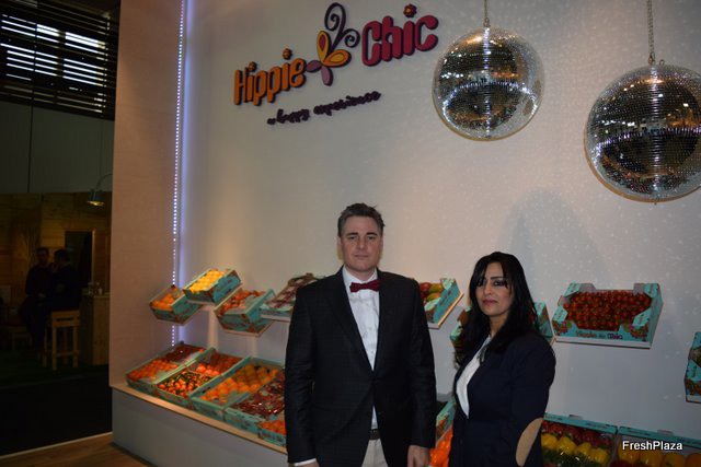 Willem van Rooij y su compañera, presentando su nueva marca Hippie Chic en el stand de Hispalco